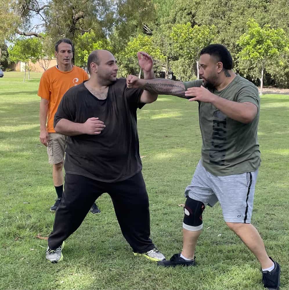 Through practices such as “sticking hands and legs,” students learn to “feel” their opponent’s intentions through body posturing & movement, so they can instinctually react. This tangible energy is cultivated through touch, so students can react to changes in an opponent’s movements whilst blindfolded. Practice also creates an internal “heaviness” in strikes and blocks applied from the hands, forearms, elbows, body, and legs, with smooth, circular actions.